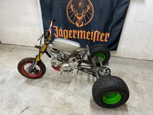 Es war auch eine Fun Kategorie min. 3 Rad am Start. 7 Vehikel baute der Meisterjäger Rolf auf und war ein Riesen Spass für Zuschauer und Fahrer. Reglement war min. 3Rad und es muss min. ein Töffli-Teil haben.