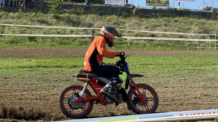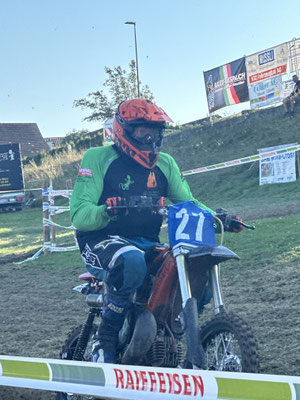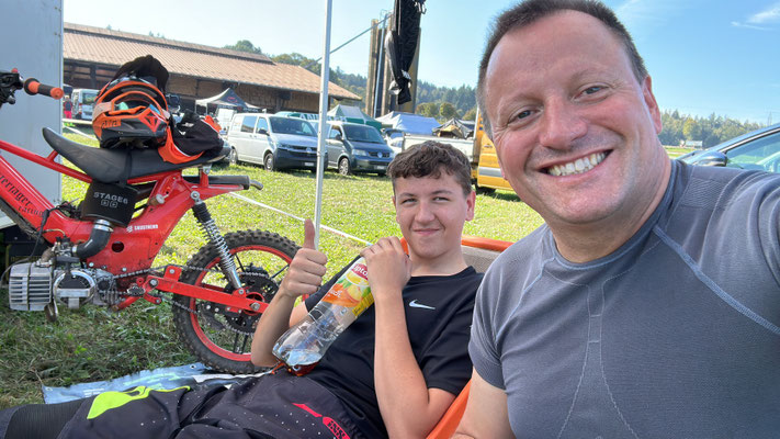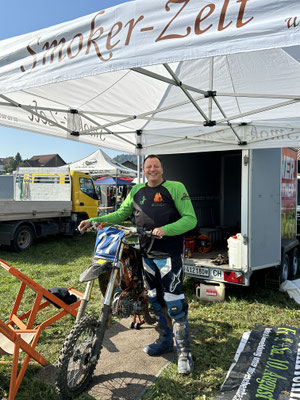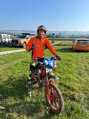 Der Meisterjäger Rolf machte am Töfflicross mit Moritz. Das Rennen organisiert der Feuerwehr Oldizug Niederwil AG
